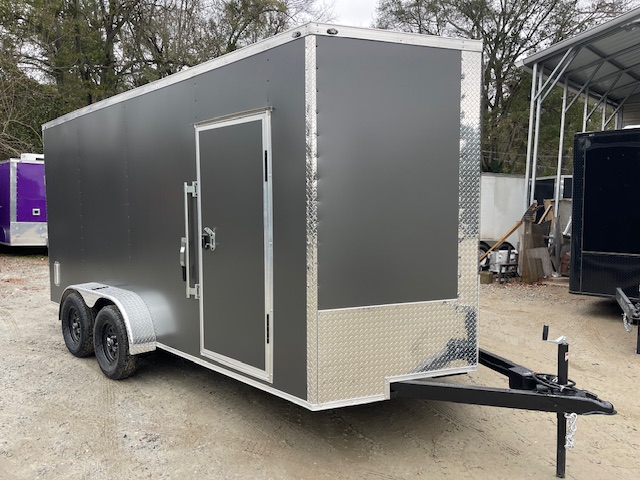 7X16 Enclosed Trailer 7' Interior Height W/ D-Rings, Side Door & Ramp